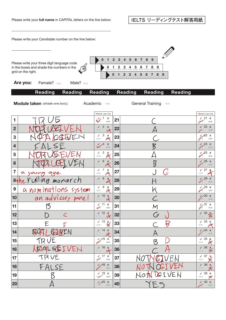 IELTSのリーディングパートは後半になるほど難しくなるようなので、パッセージ1での正解率の低さが今回のスコアの大きな要因ですね。